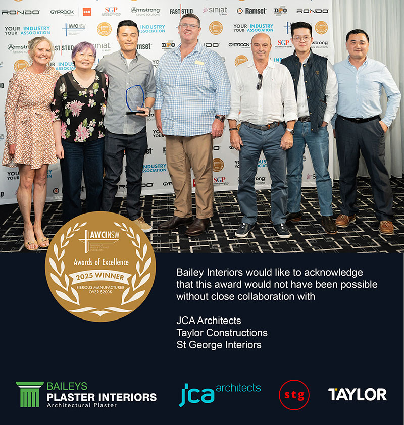 2015 has been an exceptional year again with the Association of Wall & Ceiling Industries (NSW & ACT) (AWCI) honouring us with 3 awards early in the year – Category Winners in both Heritage/Restoration and Commercial categories plus Overall Winner.
